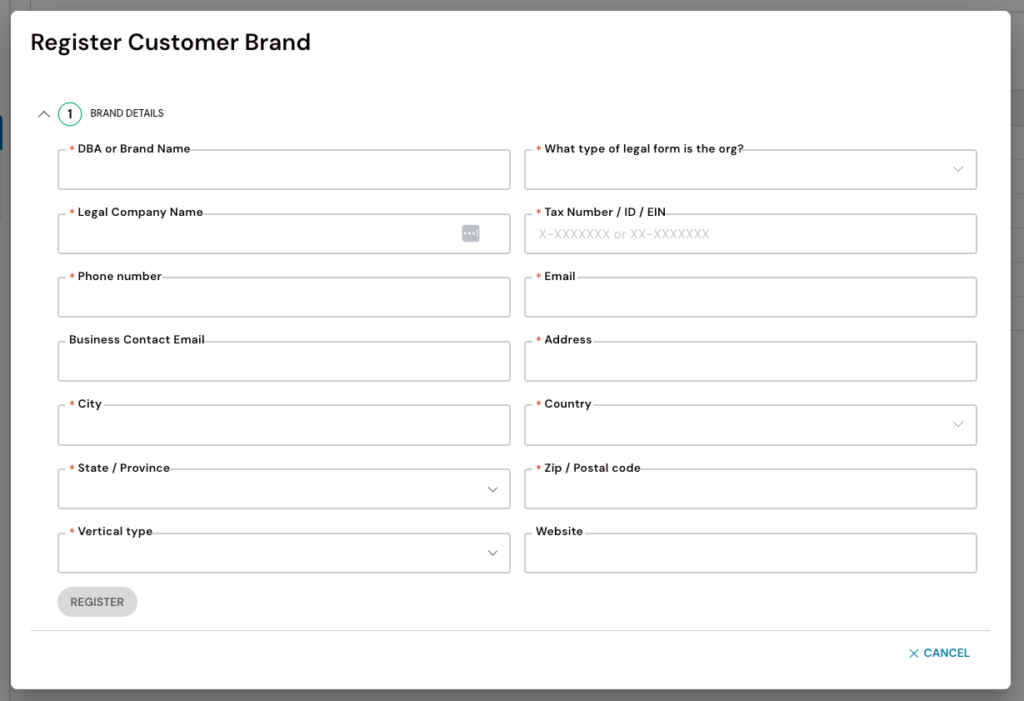 If you’re a reseller, you can add as many customer brands as you’d like. On the Brands page, click Add Customer Brand, enter the brand details, and click Register.