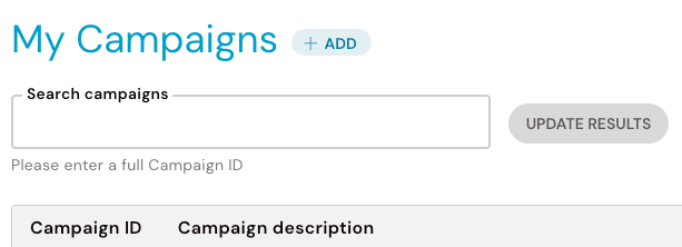 - Click +Add or My Campaigns to begin the campaign registration process.