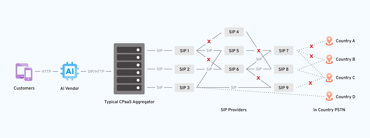 Each “hop” in a Voice AI call flow adds delay. One service hands media off to another, which forwards it to yet another. Every intermediary introduces tiny—but cumulative—delays that users perceive as awkward pauses or talk-over moments.