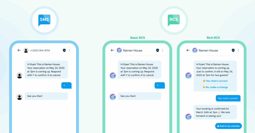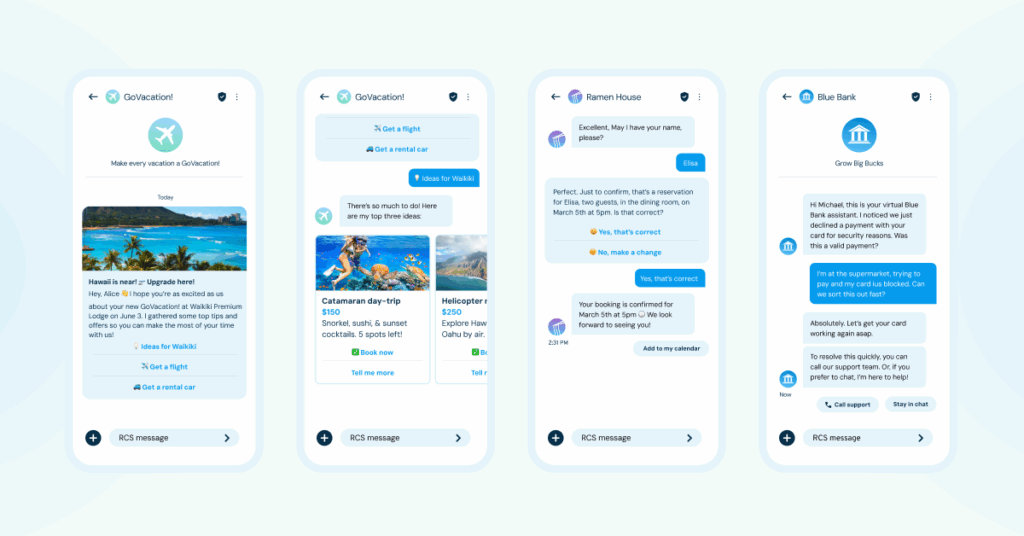 “That leads to trust. Trust leads to engagement. And this is why studies have shown that RCS can be a three to seven times more engaging channel than traditional messaging channels.”