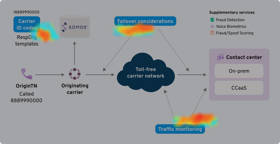 Your toll-free setup requires you to make resilience decisions on multiple fronts. The hotspots here depict the pivotal places where your decisions either make you highly susceptible to outages or invincible to them. Let’s walk through them.